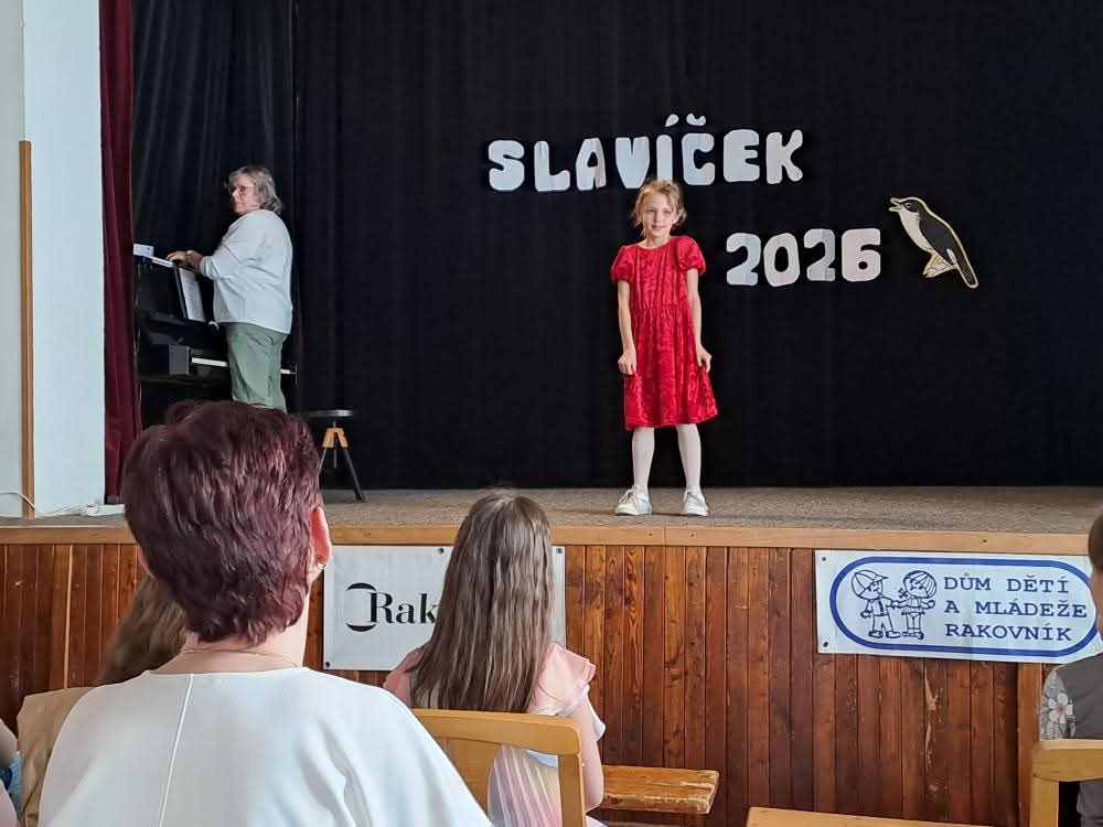 Ve středu 8. dubna 2026 jsme v Klubu DDM uspořádali 29. ročník pěvecké soutěže pro menší děti od tří let s názvem Rakovnický slavíček. Zúčastnilo se jí 45 dětí z devíti škol rakovnického okresu. Mladí zpěváčci zápolili ve čtyřech věkových kategoriích a podávali skvělé pěvecké výkony. Nejvíce obsazená byla nejstarší kategorie pro žáky 3. a 4. tříd ZŠ. Výkony soutěžících ocenila i porota, kterou letos tvořily paní Babora Polánková, učitelka na hudební nástroje a sbormistryně na ZUŠ Rakovník, paní Lucie Poddaná, učitelka zpěvu na ZUŠ Rakovník a jako porotce z řad dětí hodnotila výkony malých zpěváčků Eva Fleková, členka kytarového kroužku DDM Rakovník. Na plynulý průběh soutěže a hodnocení poroty pak dohlížela zakladatelka Rakovnického slavíčka a vedoucí kroužku kytary paní Marie Círová. Každý, kdo se soutěže zúčastnil a zazpíval, obdržel drobnou sladkou odměnu. Porota ocenila výkony mnoha zpěváčků čestným uznáním a vítěze pak čekaly i pěkné diplomy a ceny.